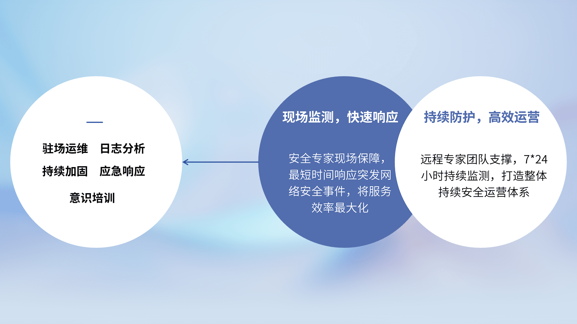 7X24小时持续监测安全事件,保持安全策略有效性,降低资产脆弱性风险,,,精准拦截黑客攻击,,,减少被黑客利用的机会,,第一时间遏制,,,降低损失。。